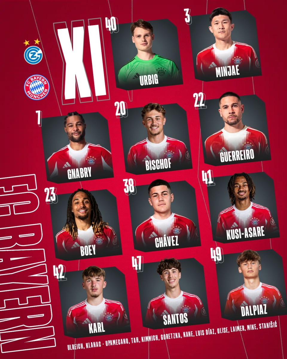 Bayern Múnich se impuso 2-1 frente a Grasshopper en un partido amistoso. Los alemanes, que se adelantaron con goles de Karl y Kusi Asare, dos de sus jóvenes promesas, lograron mantener la ventaja a pesar del descuento de los suizos. Como novedad, destacó la titularidad de Felipe Chávez, quien debutó con el equipo, así como el esperado estreno de la estrella colombiana Luis Díaz, que estuvo cerca de marcar.