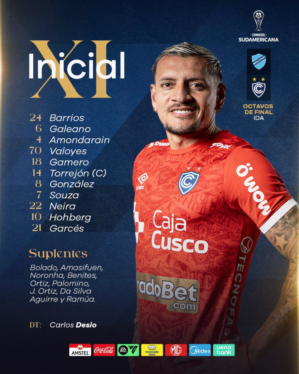 Cienciano vs Bolívar: alineaciones posibles