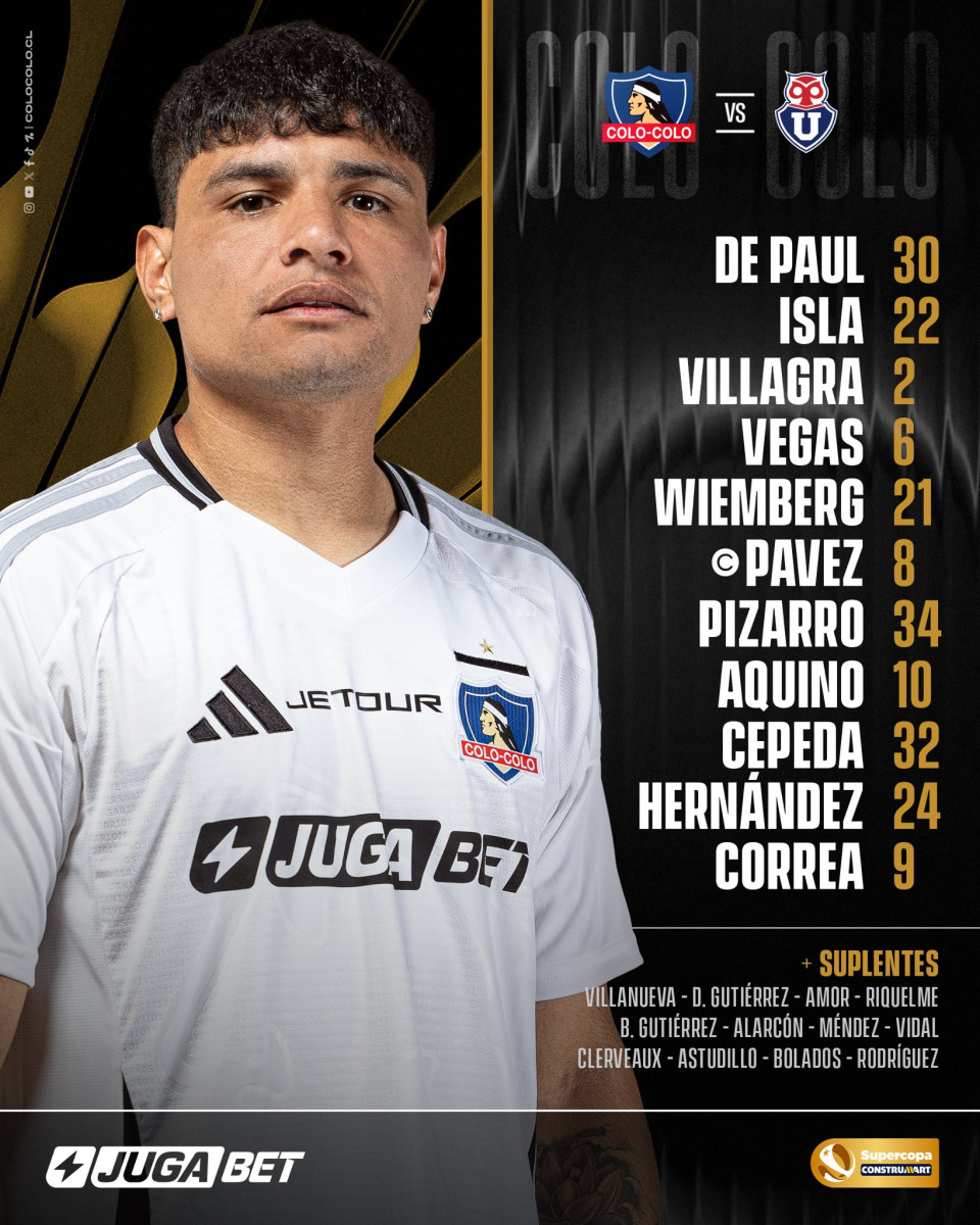 Alineaciones posibles entre 'U' de Chile vs Colo Colo por Supercopa 2025