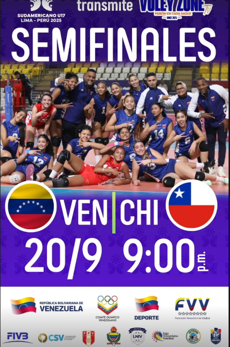Venezuela se quedó con el segundo boleto a la final del Sudamericano de Vóley Sub 17 tras remontar 3-1 contra Chile (23-25, 25-19, 25-20 y 25-18) en el partido por semifinales. Ahora, el combinado llanero se medirá a Brasil por el título de campeón, mientras que las sureñas harán lo propio ante Perú por el tercer lugar.