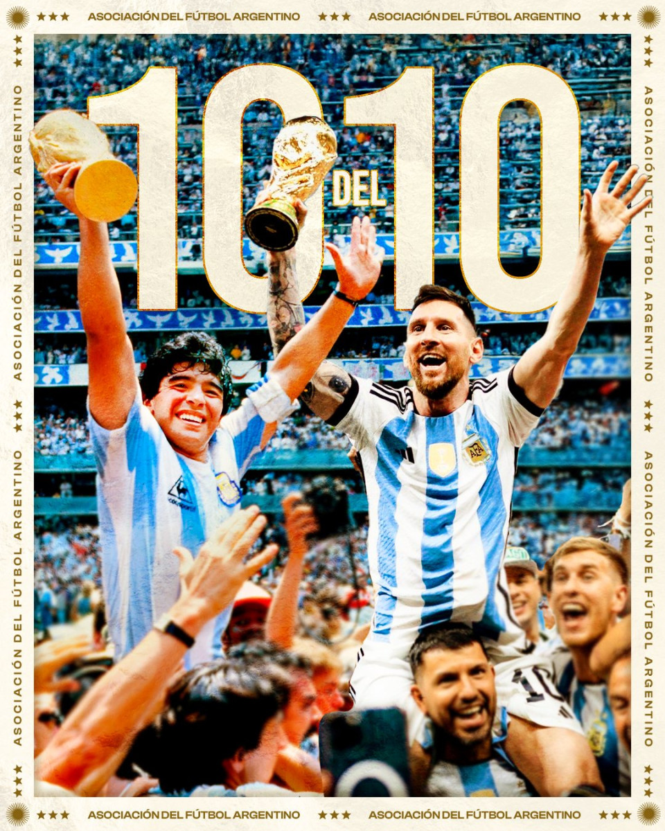 En redes sociales, la albiceleste publicó una imagen conmemorativa donde sale Diego Armando Maradona y Lionel Messi.