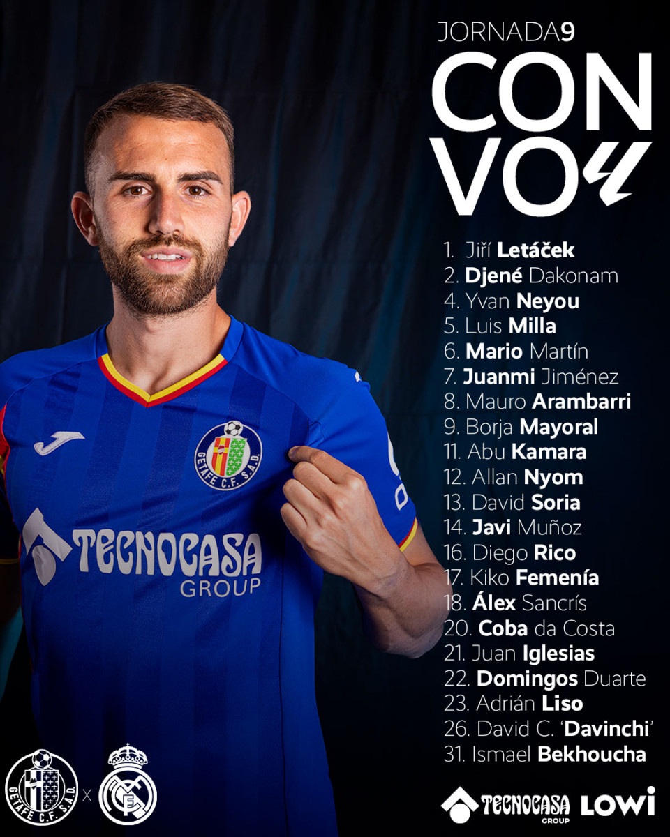 Así quedó la convocatoria del técnico José Bordalás para el cruce de este domingo. Foto: Getafe CF