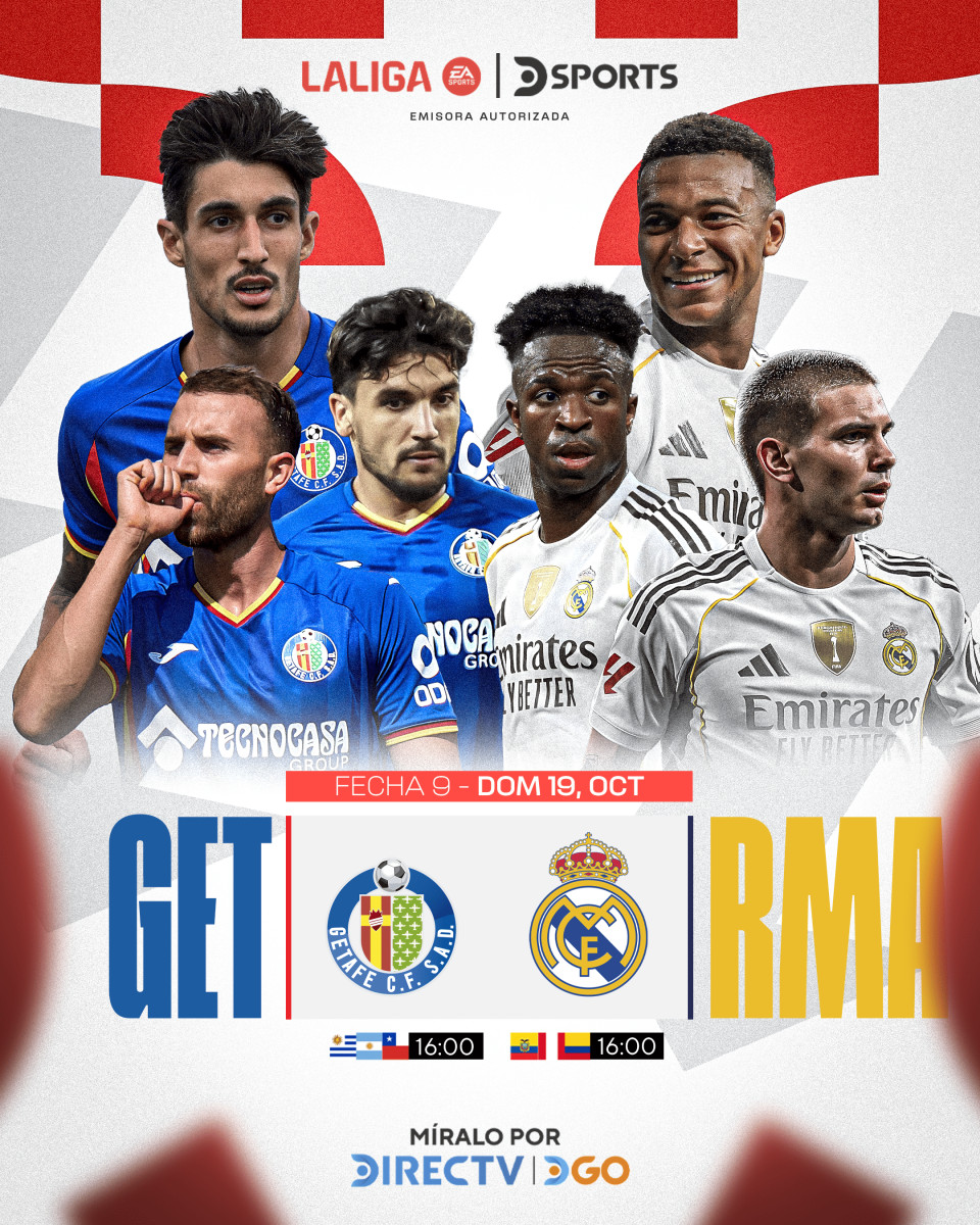 En Sudamérica, el Real Madrid vs Getafe por la liga española estará a cargo del canal internacional DSports, señal 610 y 1610 HD de DirecTV. En México, el enfrentamiento irá por Sky Sports. En España, el duelo irá por DAZN LaLiga y Estados Unidos, por ESPN Deportes.