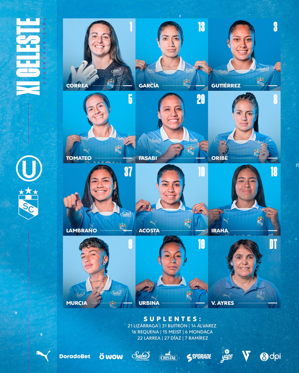 - Sporting Cristal: Correa, Fasabi, Gutiérrez, Tomateo, Urbina, Oribe, Lambraño, Acosta, Iraha, Tomayconsa, Murcia.