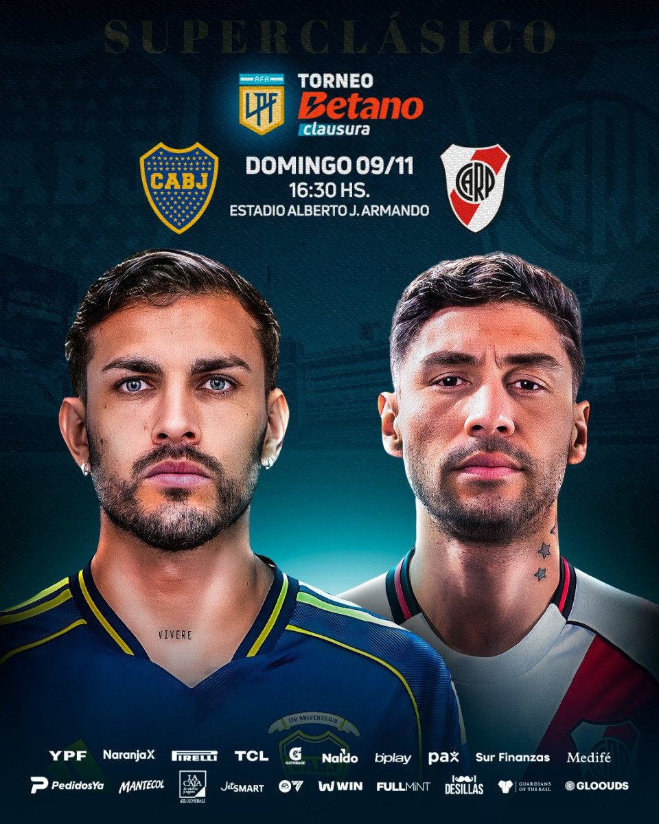 - 1XBet: gana Boca (2,47), empate (2,83), gana River (3,24)