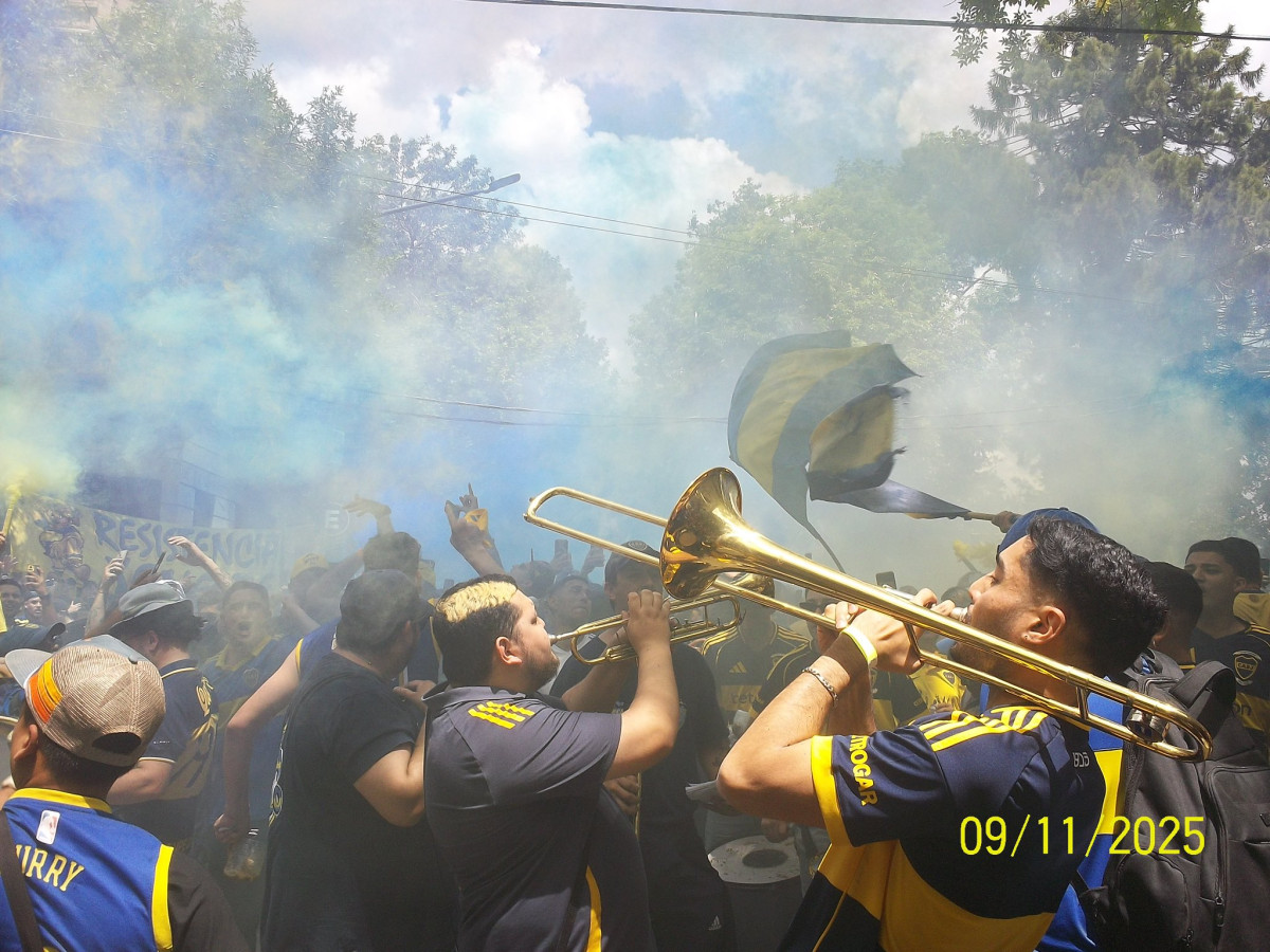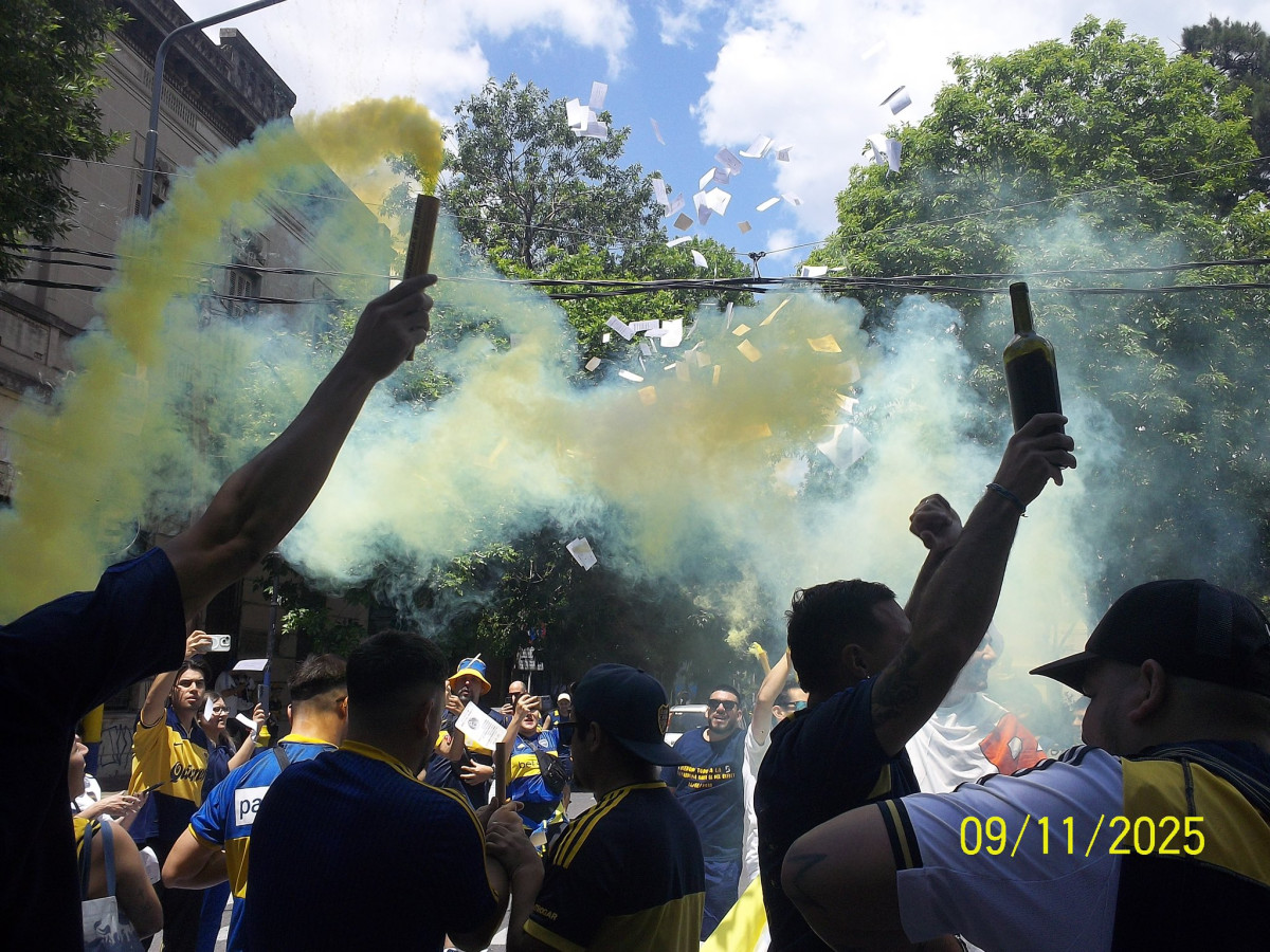 A poco más de dos horas para el inicio del partido, los hinchas xeneizes alientan en las afueras del estadio La Bombonera. Fotos: Boca Juniors