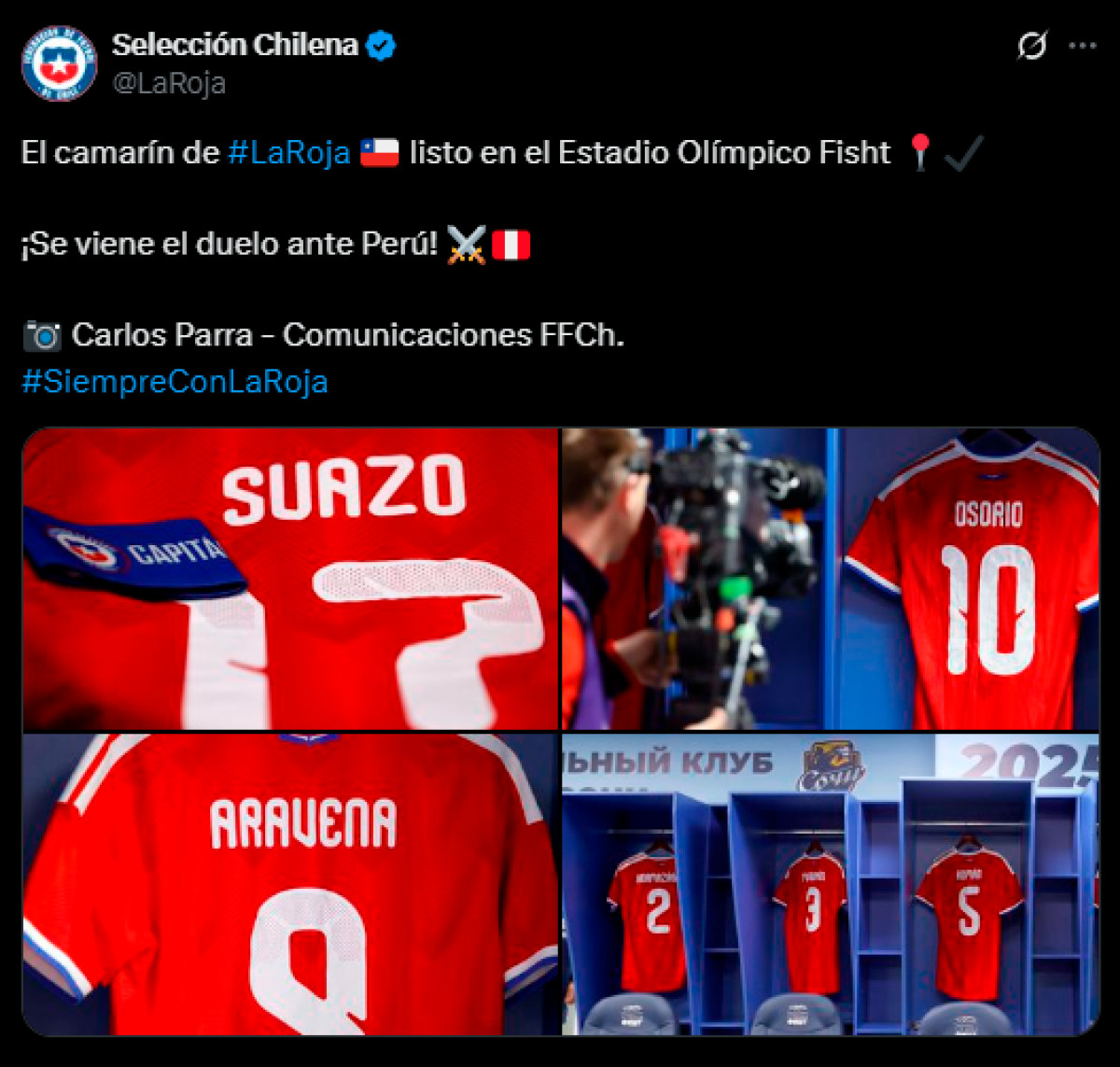 El cotejo entre Perú vs Chile por una nueva edición del Clásico del Pacífico iniciará a las 12.00 p. m. (hora peruana). Foto: Twitter