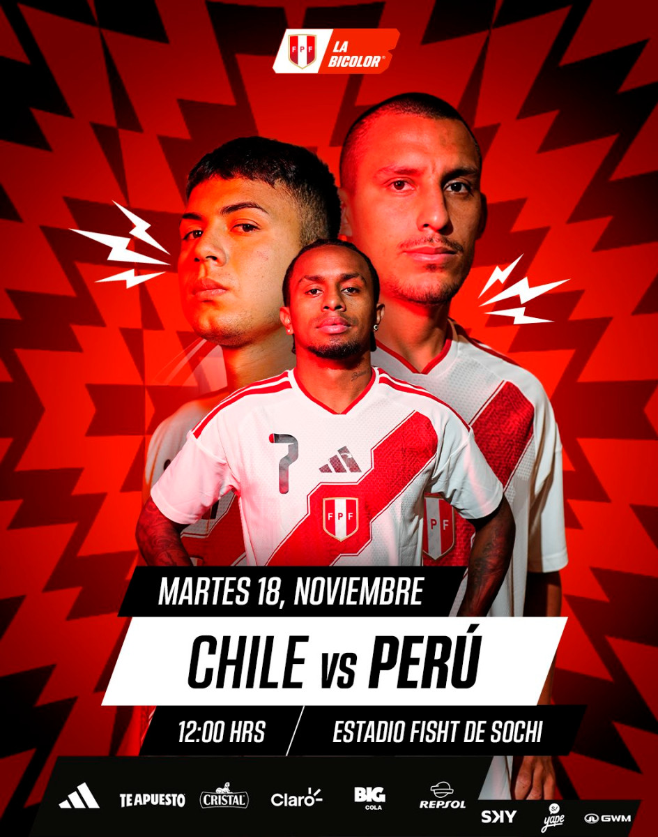 Perú y Chile se enfrentan en el Estadio Olímpico de Sochi en el cierre de la fecha FIFA de noviembre.