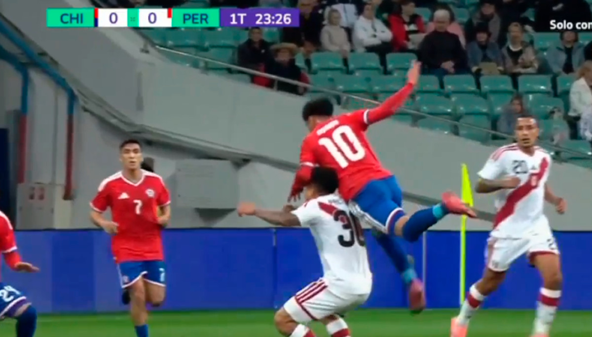Minuto 31: la defensa chileno se equivoca en salida y cometen falta contra Valera. El árbitro expulsa a Román.