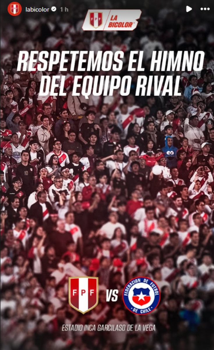 Desde la Bicolor compartieron un post solicitando que se respete el himno de Chile, con el fin de mostrar consideración hacia la selección rival y dejar en alto el nombre de Perú.