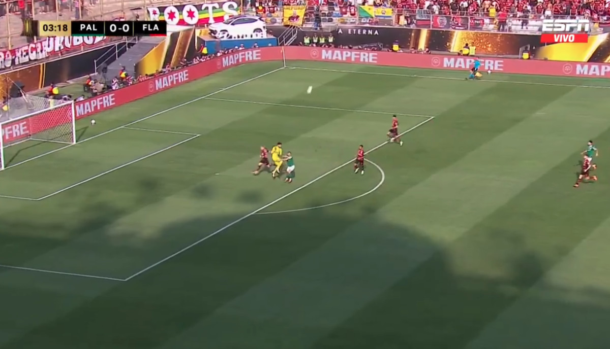 Minuto 75: el Verdao llena de centros el área de Flamengo para intentar empatar la final.
