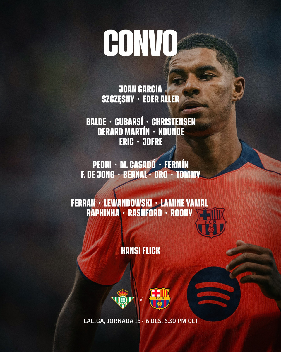 Bienvenidos, amigos de La República, a la cobertura del partido entre Barcelona y Real Betis por la fecha 15 del campeonato español. Foto: Barcelona/X