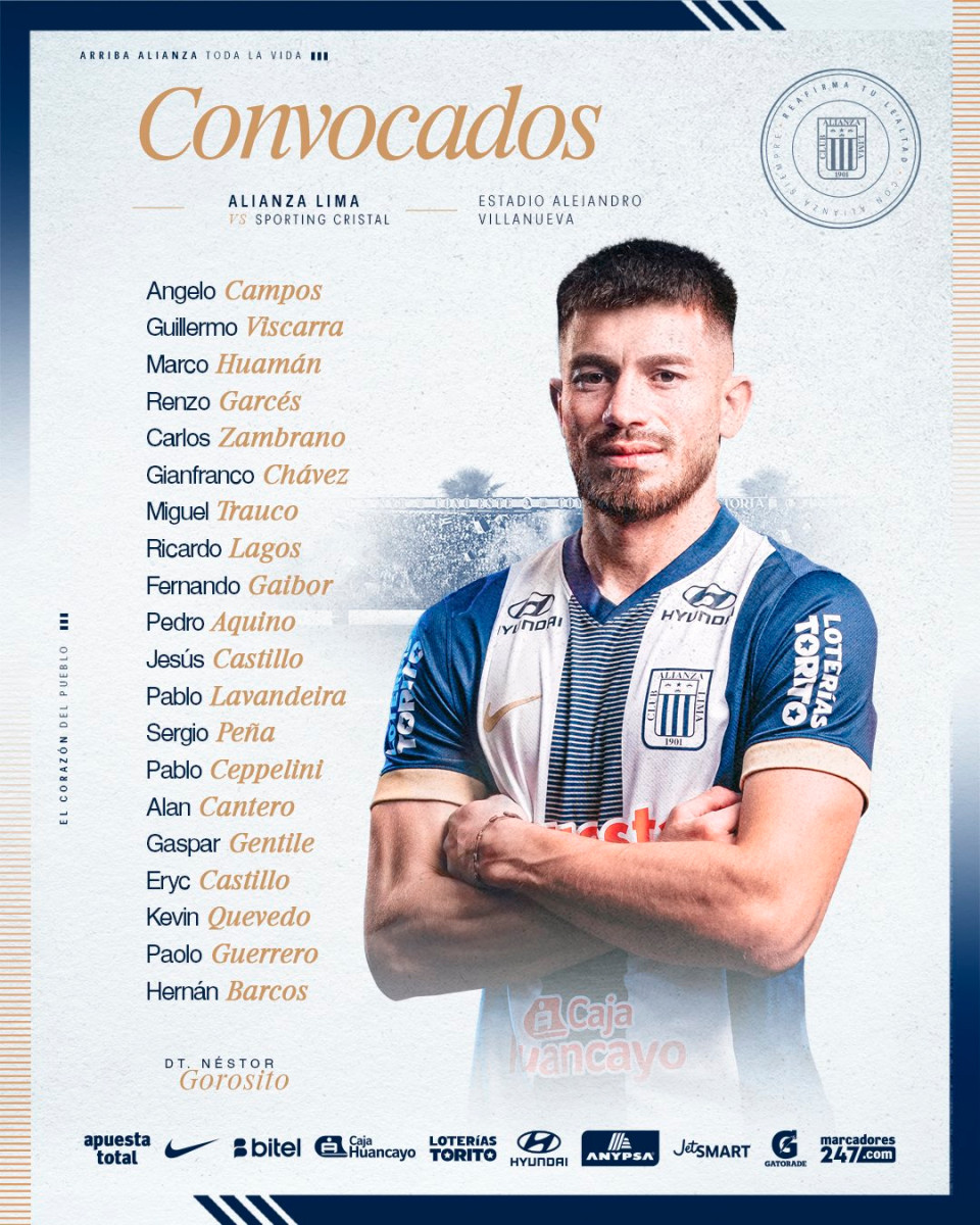 En las últimas horas, algunos periodistas revelaron la alineación de Alianza Lima ante Cristal. La gran ausencia en el 11 es el argentino Guillermo Enrique, quien estará en el banco y su lugar será ocupado por Marco Huamán.