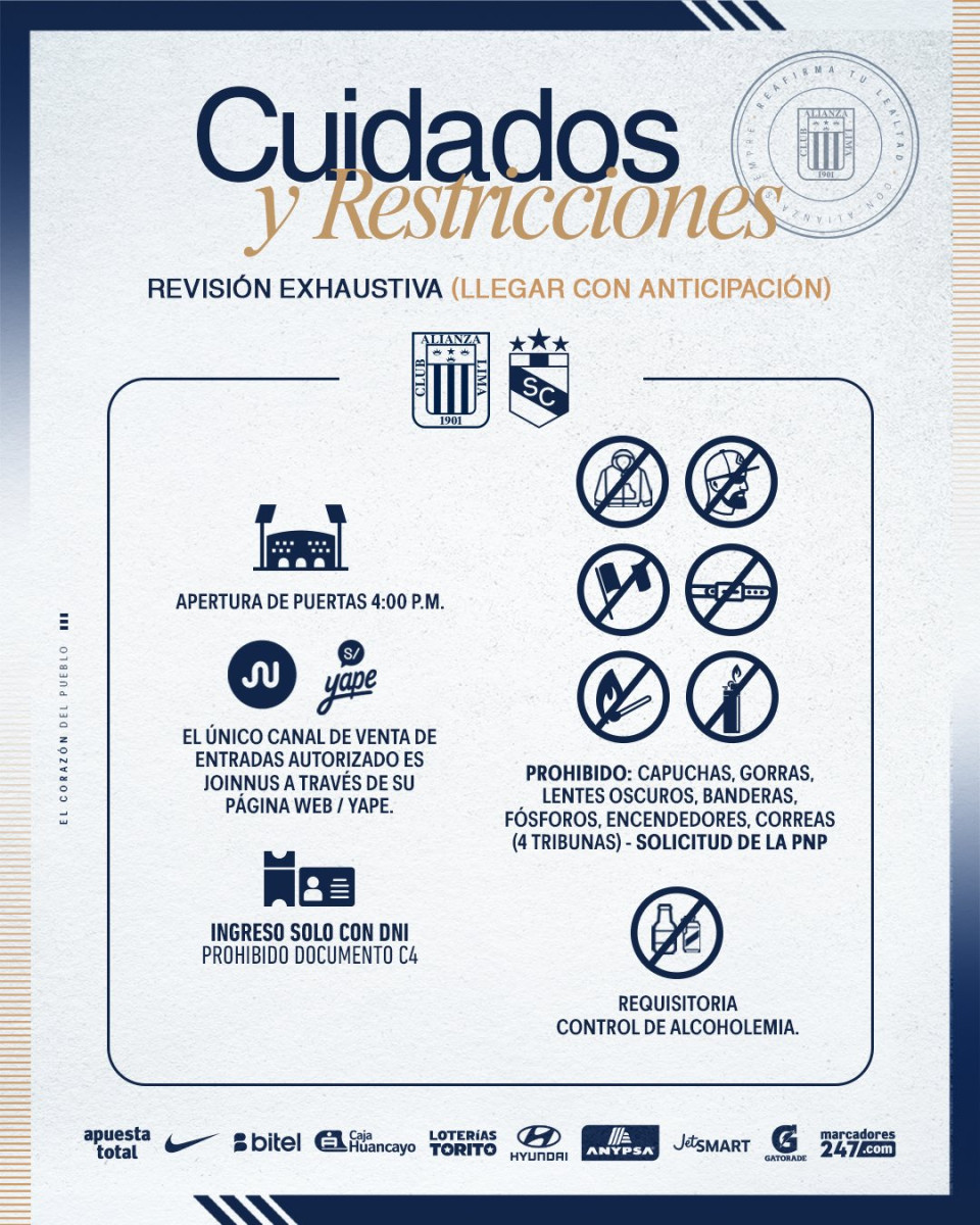 Los aficionados que acudan al Alejandro Villanueva tendrán que tomar en cuenta las siguientes restricciones. Foto: Alianza Lima.