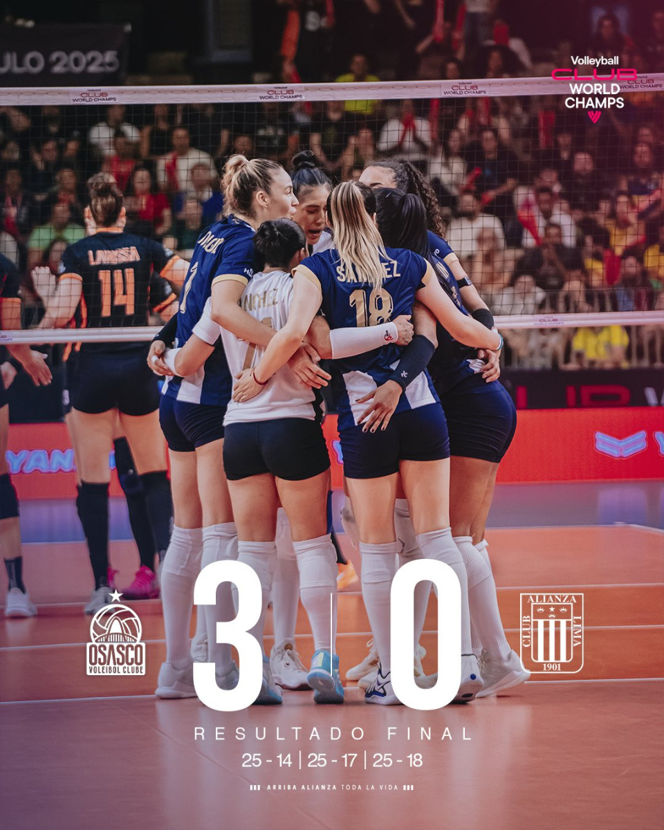 Alianza Lima hizo su histórico debut en el Mundial de Clubes de Vóley 2025 con una derrota 0-3 frente a Osasco de Brasil en partido correspondiente al grupo A. Las blanquiazules se vieron ampliamente superadas en los tres sets que duró el encuentro (14-25, 17-25 y 18-25), aunque mostraron un ligero progreso entre cada parcial. Ahora, el sexteto comandado por Facundo Morando está obligado a ganarle a Zhetysu VC, por la segunda jornada, para no quedar eliminado del certamen.