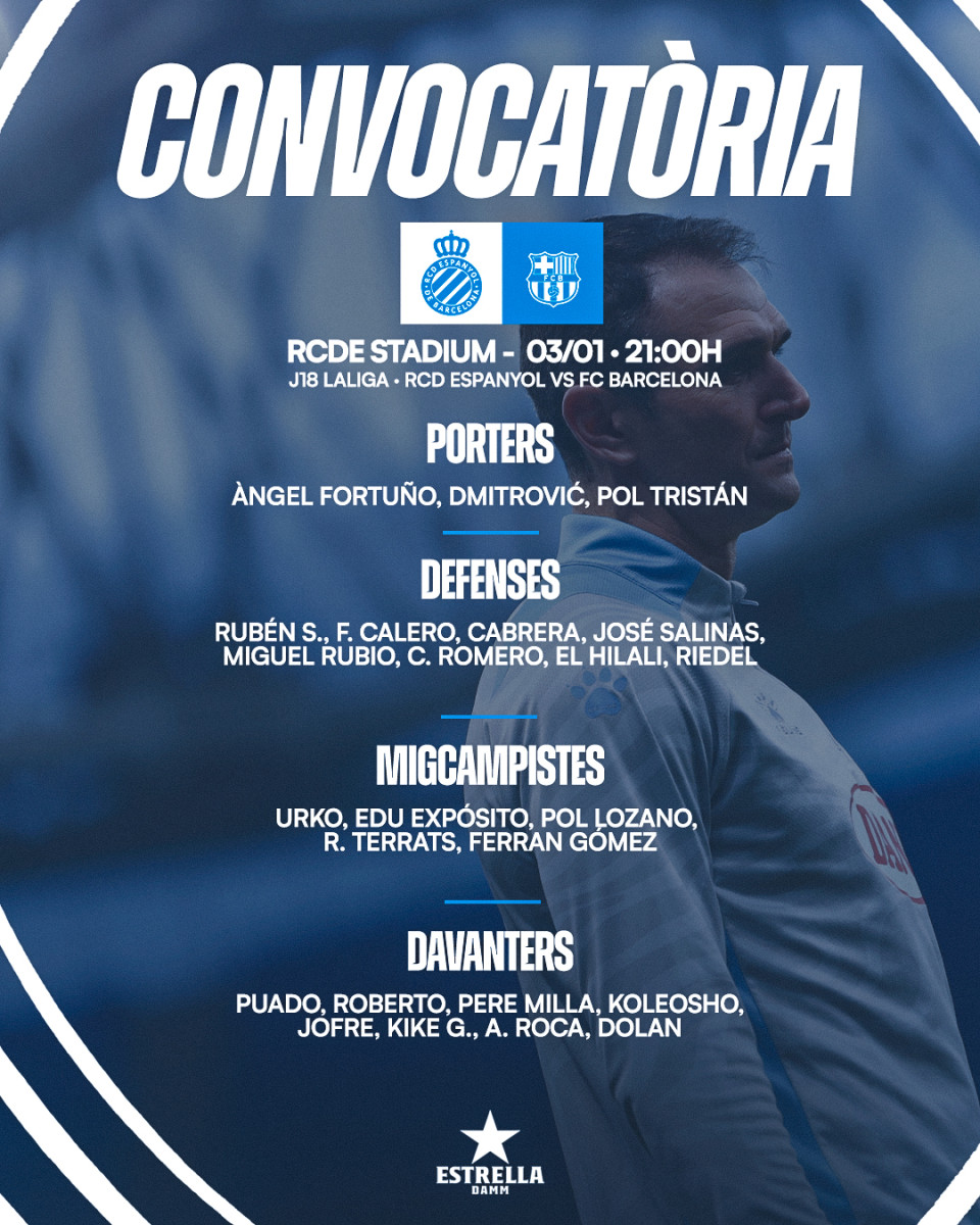 - Espanyol: Dmitrović, Calero, Cabrera, El Hilali, Carlos Romero, Urko González, Pol Lozano, Edu Expósito, Dolan, Pere Milla y Roberto.