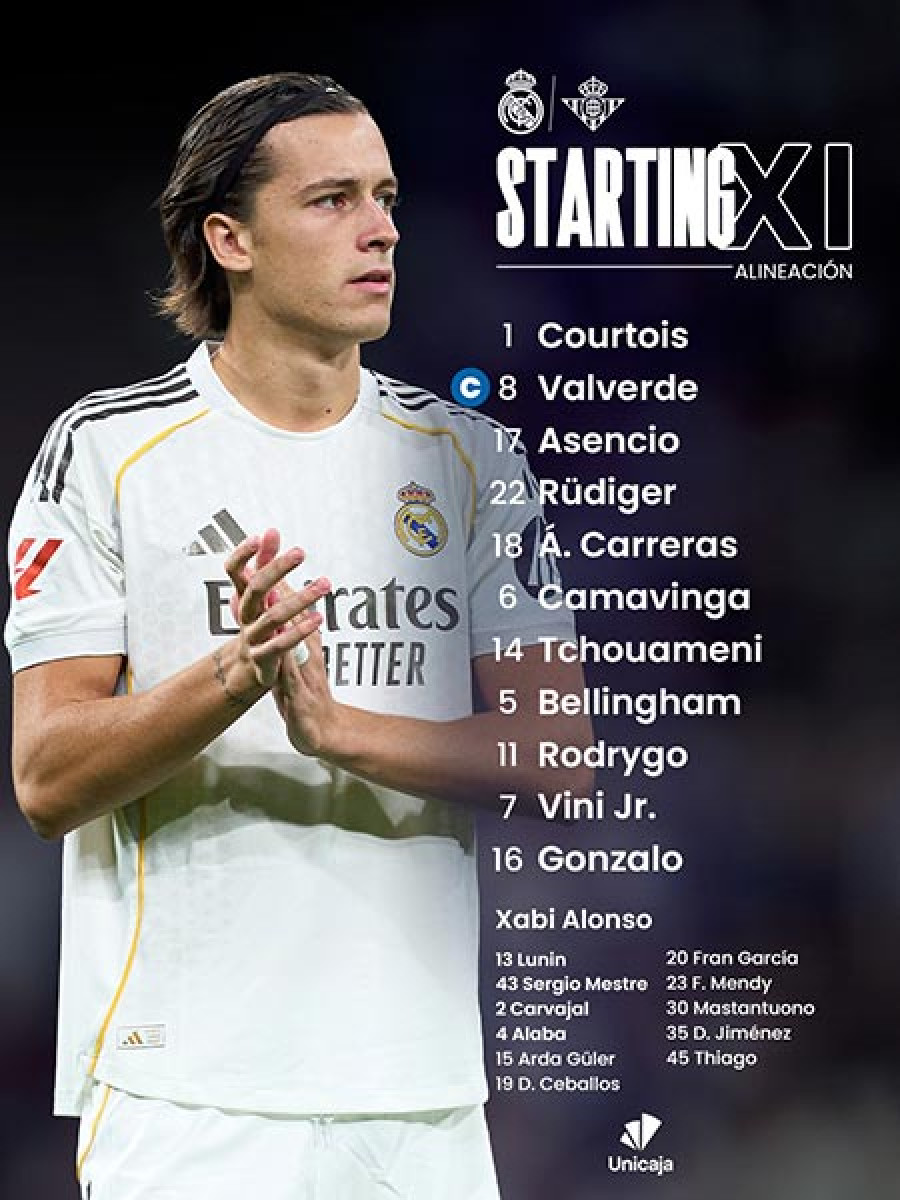 - Real Madrid: Courtois; Valverde, Rüdiger, Asencio, Carreras; Tchouaméni, Camavinga, Güler; Bellingham, Rodrygo, Vinícius Jr.