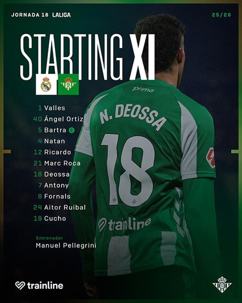 - Real Betis: Valles; Bellerín, Bartra, Natan, Valentín; Deossa, Marc Roca; Ruibal, Fornals, Antony; Cucho.