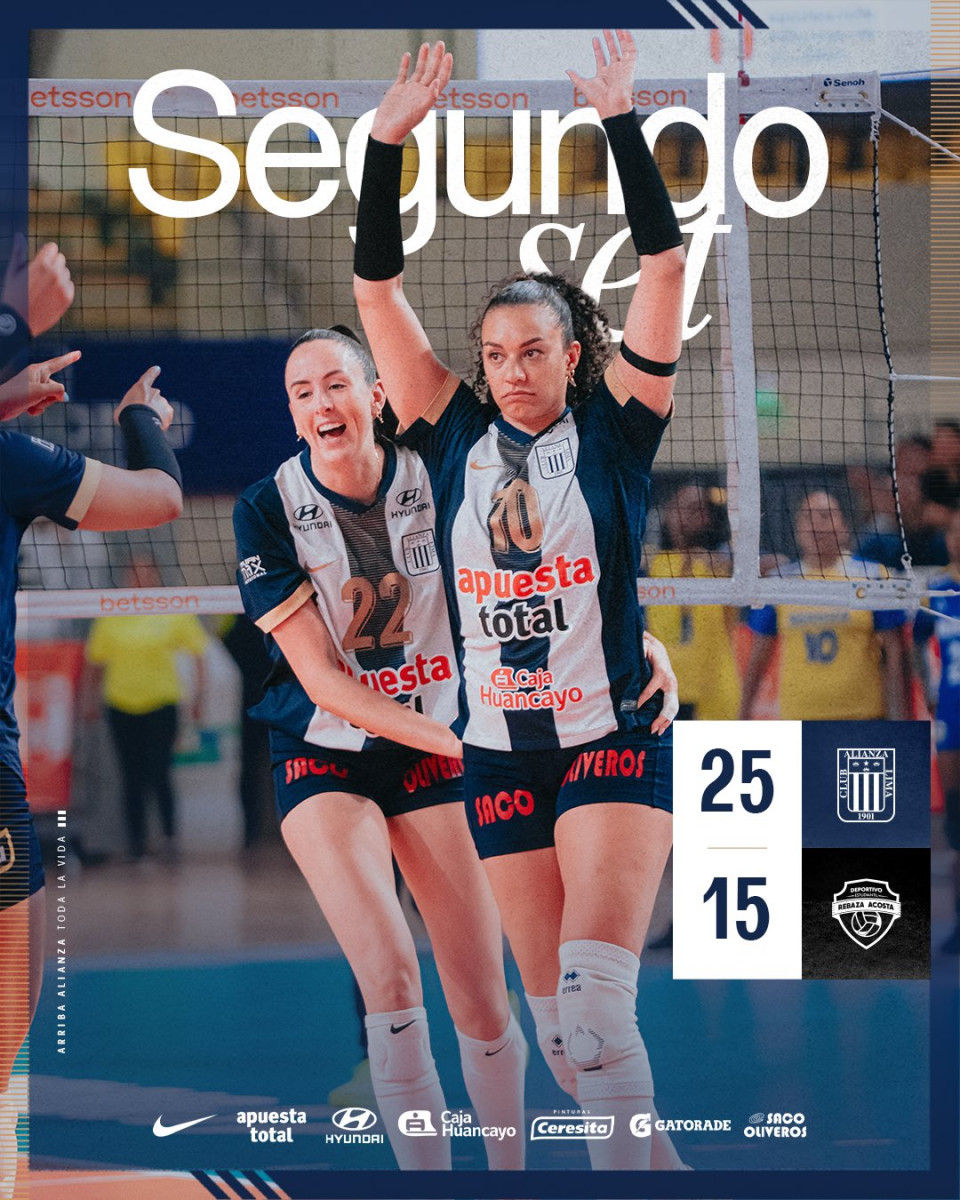 Alianza Lima se impuso por tres sets a uno frente a Rebaza Acosta en un partidazo por la primera jornada de la Liga Peruana de Vóley, disputado en el Polideportivo Lucha Fuentes (Villa El Salvador). A pesar del dominio de las íntimas en el primer set, Rebaza logró imponerse en el tercero cuando todo parecía decantado para el conjunto blanquiazul, forzando así el cuarto set. No obstante, las blanquiazules demostraron su jerarquía y lograron sacar adelante la victoria.