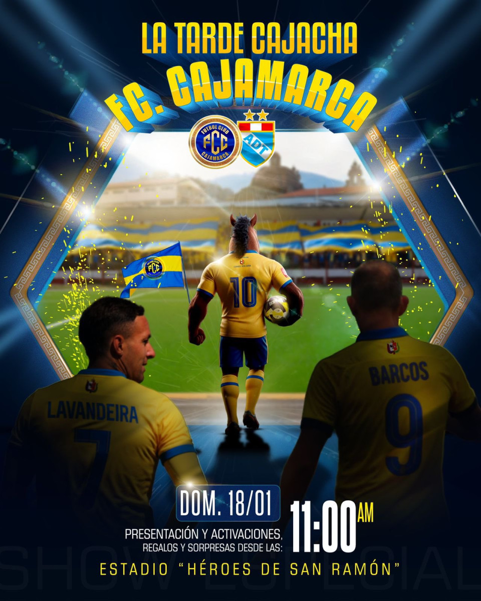 Los equipos de FC Cajamarca y ADT se verán las caras por el partido presentación en la Tarde Cajacha. El partido se jugará el domingo 18 de enero en Cajamarca, a las 3.00 p. m.