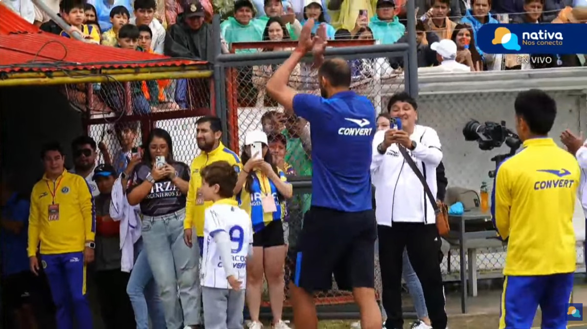 El 'Pirata', estrella de esta tarde de presentación, es aclamado por los hinchas a su salida de los camerinos. Fotos: captura de Nativa