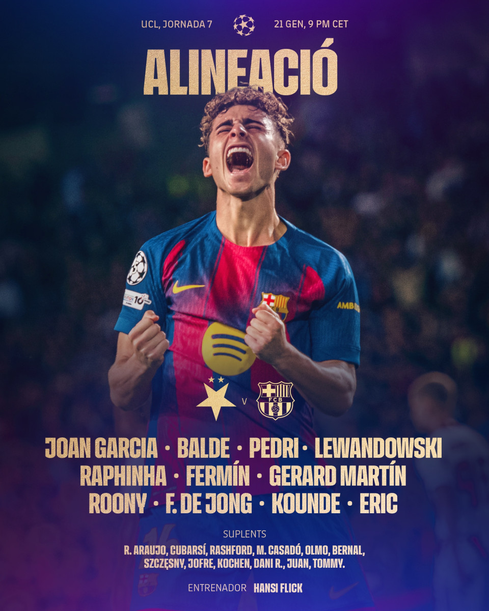 - Barcelona: Joan Garcia; Gerard Martín, Eric Garcia, Cubarsí, Koundé; De Jong, Pedri, Fermín; Rashford, Lewandowski y Bardghji.