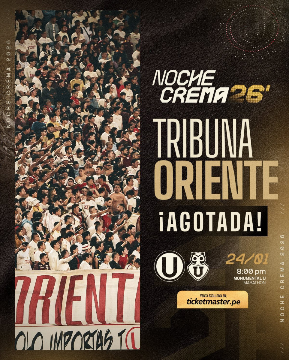 Universitario confirmó a través de sus redes sociales, que la tribuna oriente se agotó para la Noche Crema.