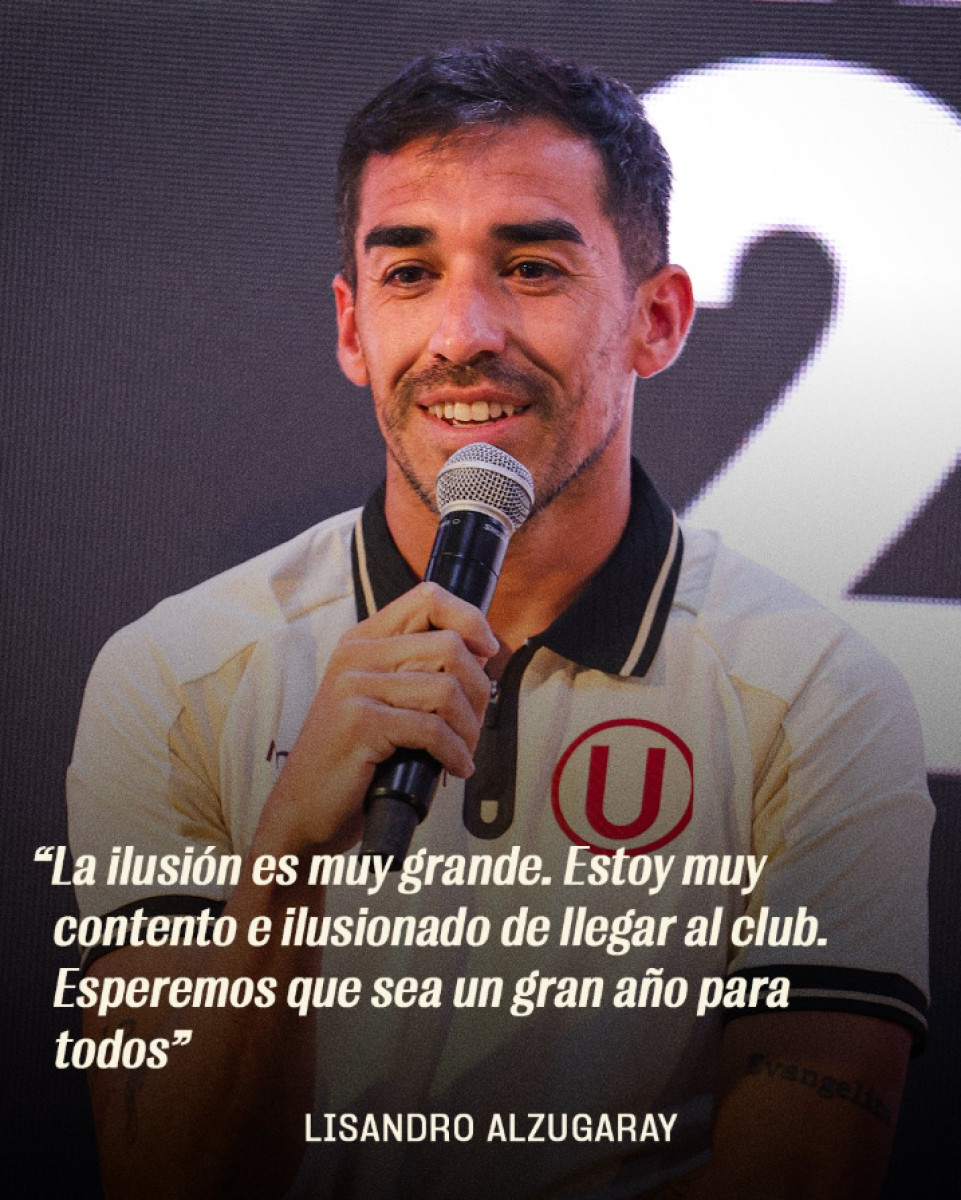 En conferencia de prensa, el argentino Lisandro Alzugaray compartió su alegría por llegar a la 'U' y aseguró que no fue difícil tomar la decisión de venir al fútbol peruano. "La ilusión es muy grande. Estoy muy contento e ilusionado de llegar al club. Esperemos que sea un gran año para todos", declaró.