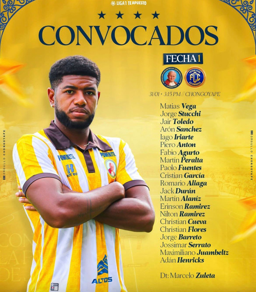 Estos son los futbolistas convocados por Juan Pablo II para enfrentar a FC Cajamarca.