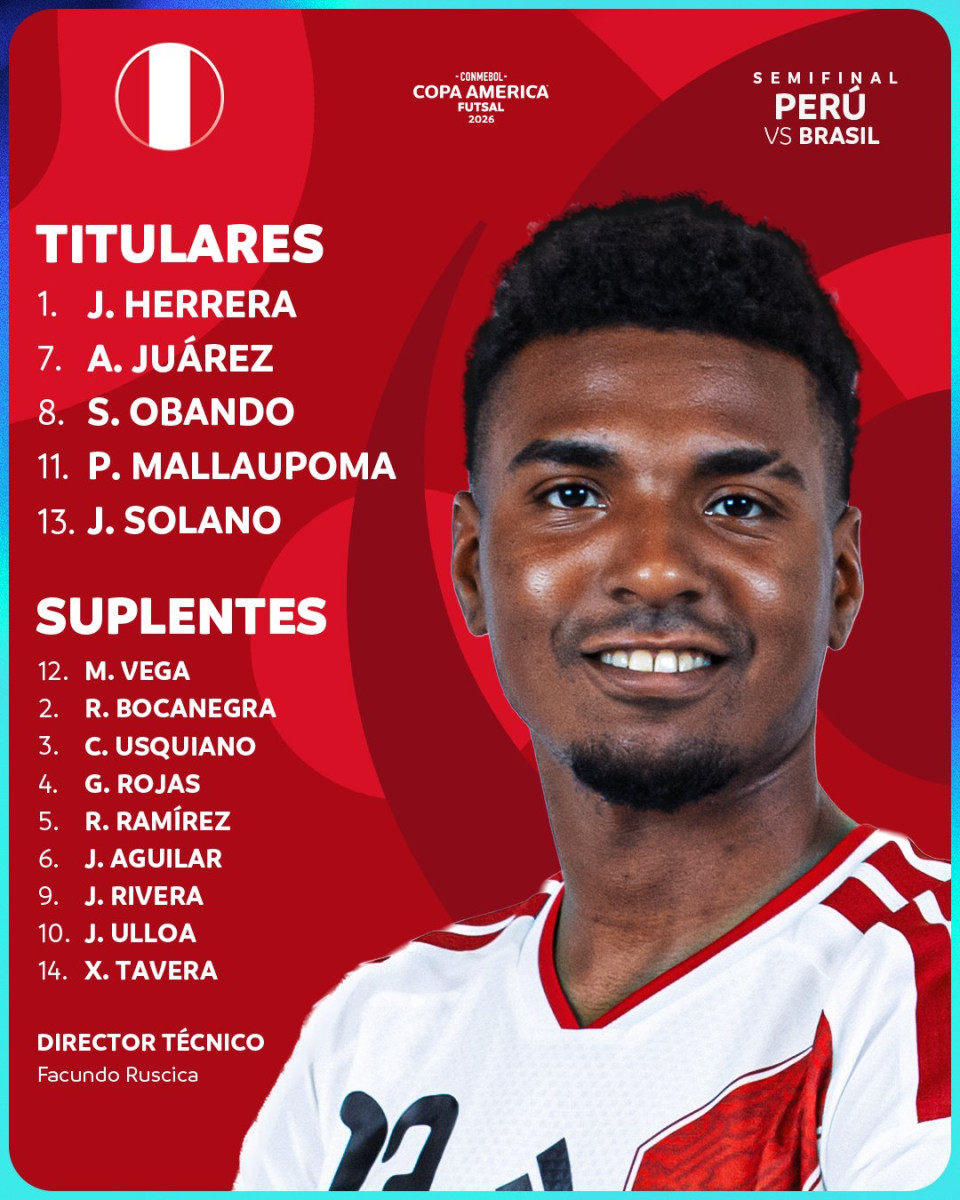 El sueño de la selección peruana en la Copa América de Futsal se terminó en la ronda de semifinales con una dura derrota 2-4 ante Brasil. El equipo de Facundo Ruscica dio pelea frente al Scratch, pero no le alcanzó y ahora solo le resta una presentación más en el certamen, ante Venezuela, por un histórico tercer puesto. Xavier Tavera y Sebastián Obando marcaron los goles de la Bicolor en este partido.