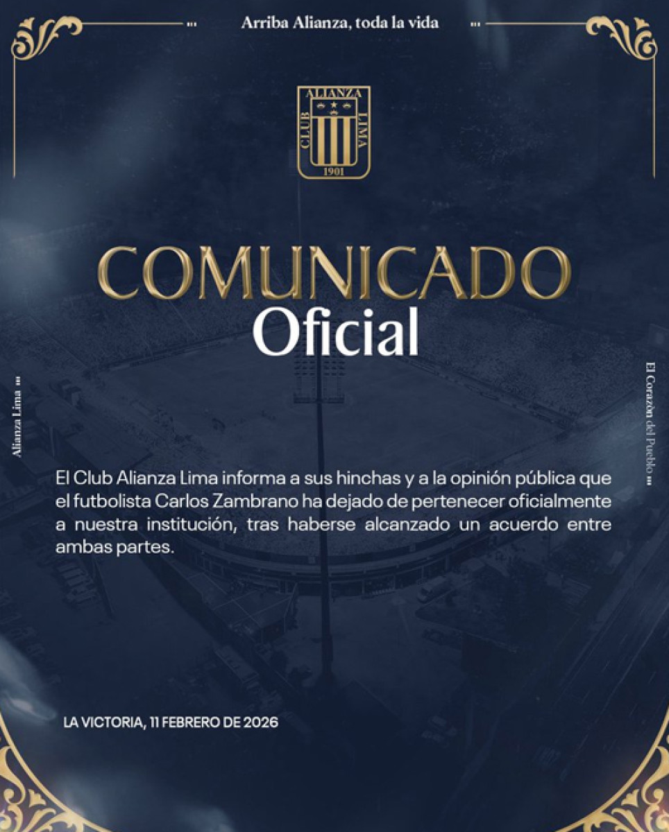 A través de un comunicado, la institución blanquiazul que Carlos Zambrano dejó de pertenecer al club después de la denuncia por presunto abuso sexual.