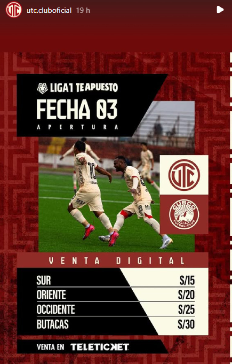 Entradas para UTC vs Cusco FC