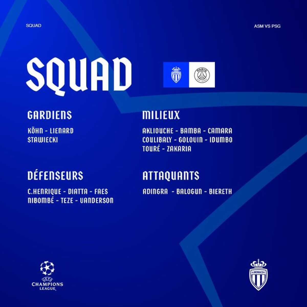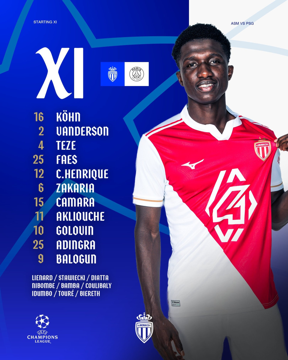 - Mónaco: Kohn, Vanderson, Teze, Kehrer, Caio Henrique, Coulibaly, Zakaria, Diatta, Golovin, Adingra, Balogun