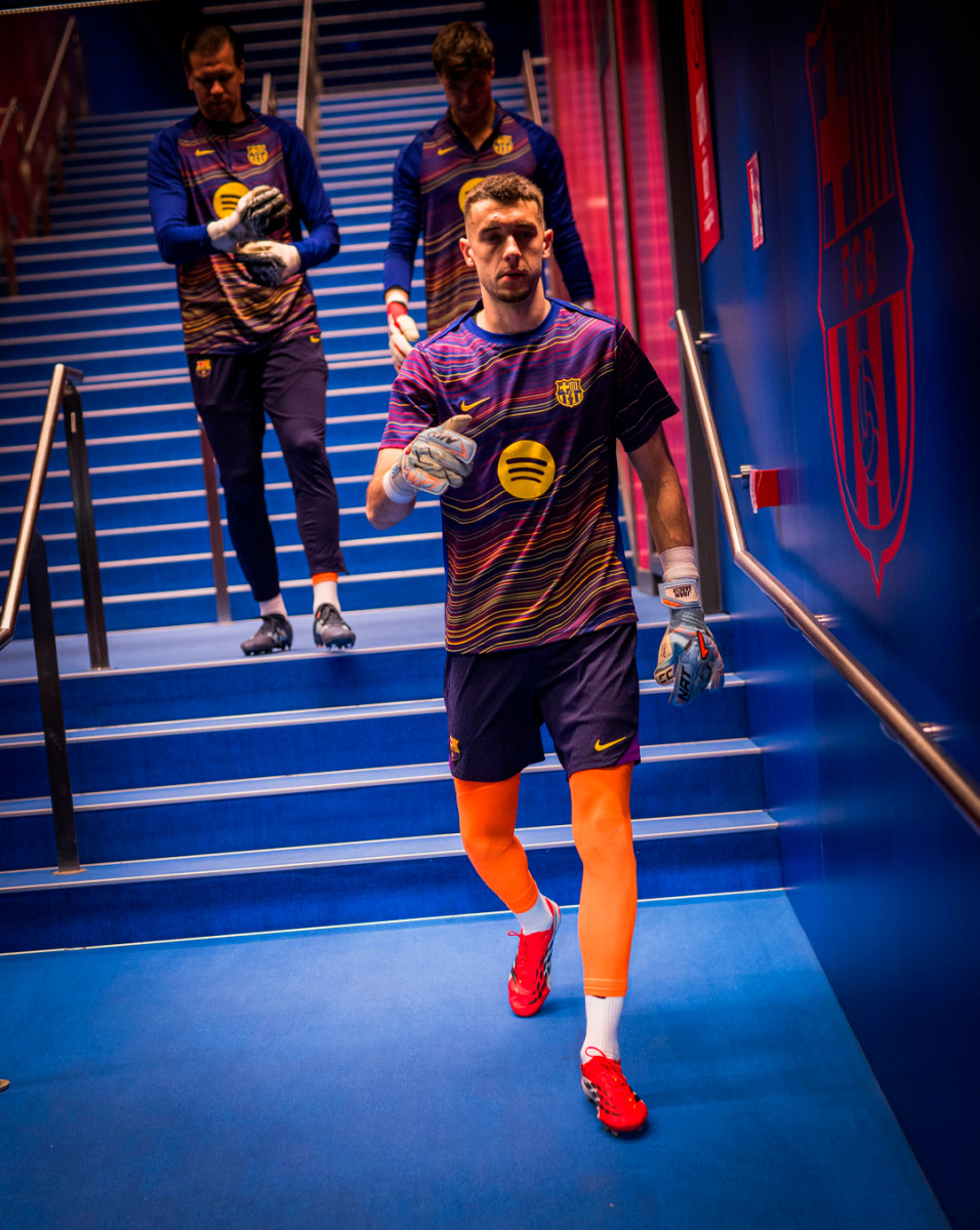 Los porteros blaugranas son los primeros en salir al campo de juego para realizar los trabajos precompetitivos. Foto: FC Barcelona.