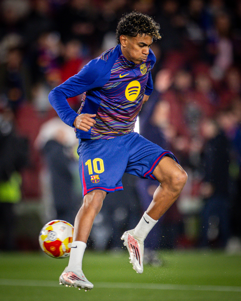 Minuto 38. Lamine Yamal es el que toma la iniciativa en el club culé. Cada llegada suya al área pone en alerta a la defensa rival.