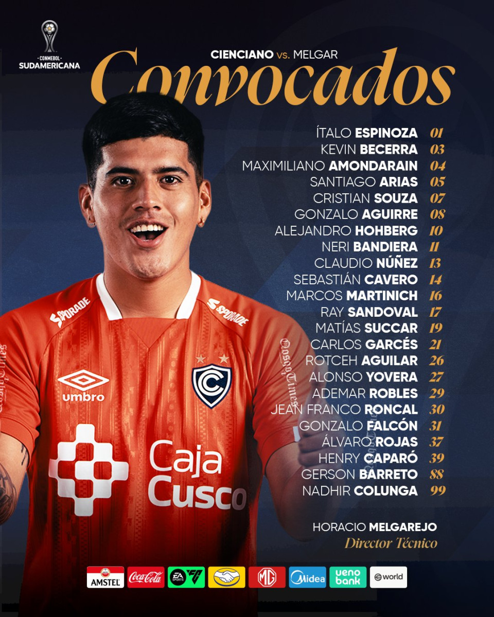 Esta es la nómina que el técnico Horacio Melgarejo definió para enfrentar a Melgar. Foto: Cienciano