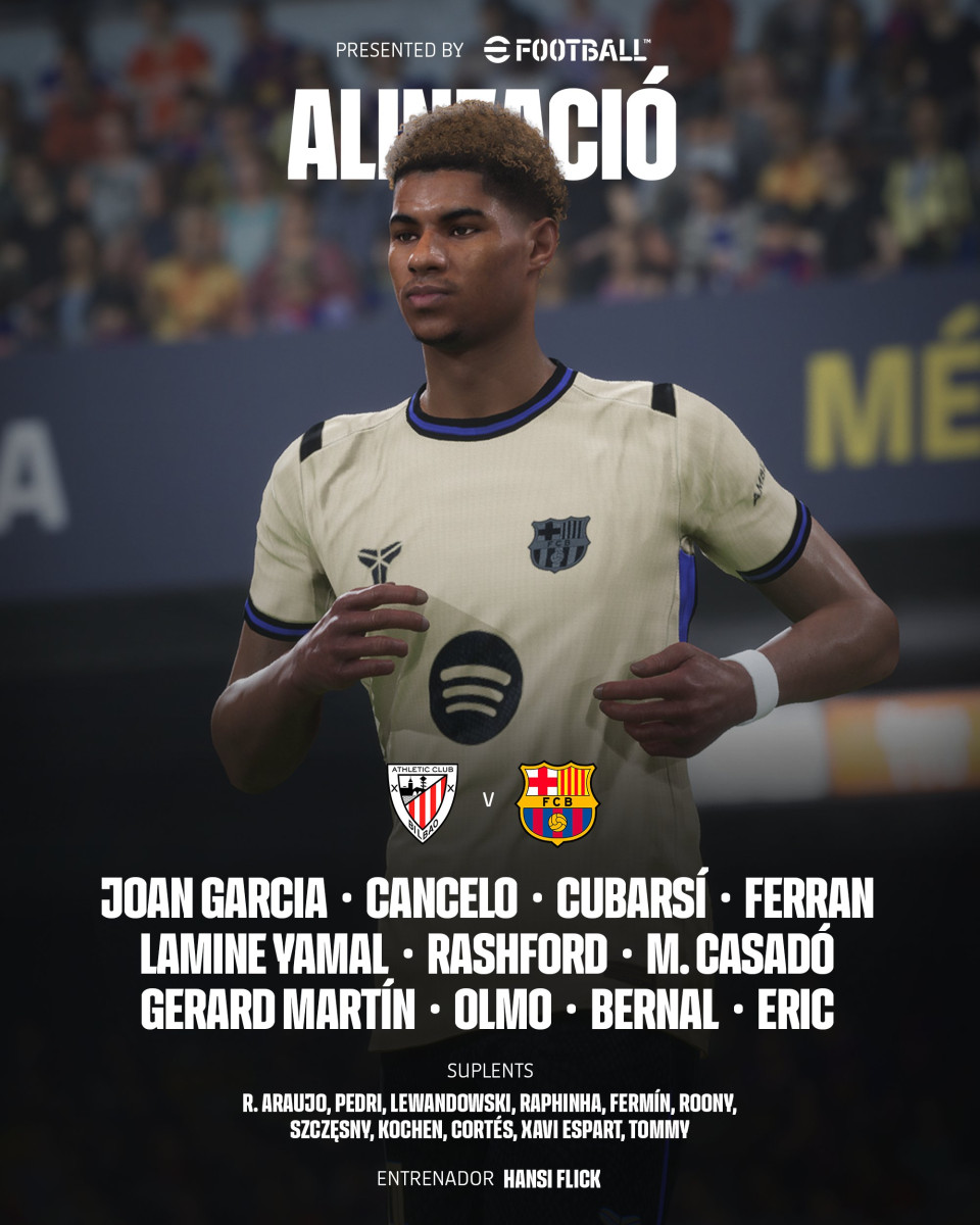 - FC Barcelona: Joan Garcia; Koundé, Cubarsí, Eric, Cancelo; Bernal, Pedri, Fermín; Lamine, Raphinha y Ferran.