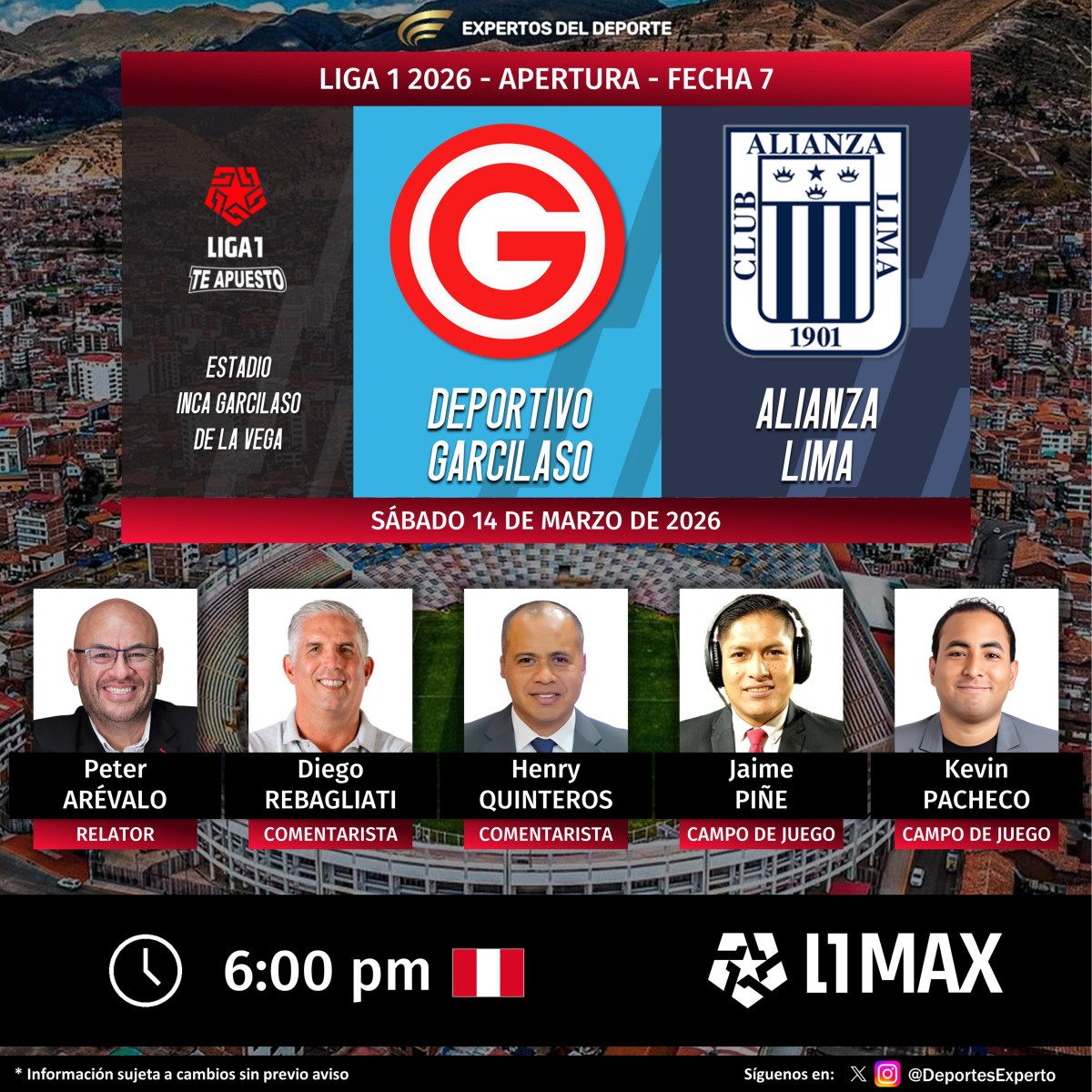 En Cusco y el resto del territorio peruano, el partido entre Alianza y Garcilaso se podrá seguir desde las 6.00 p. m.