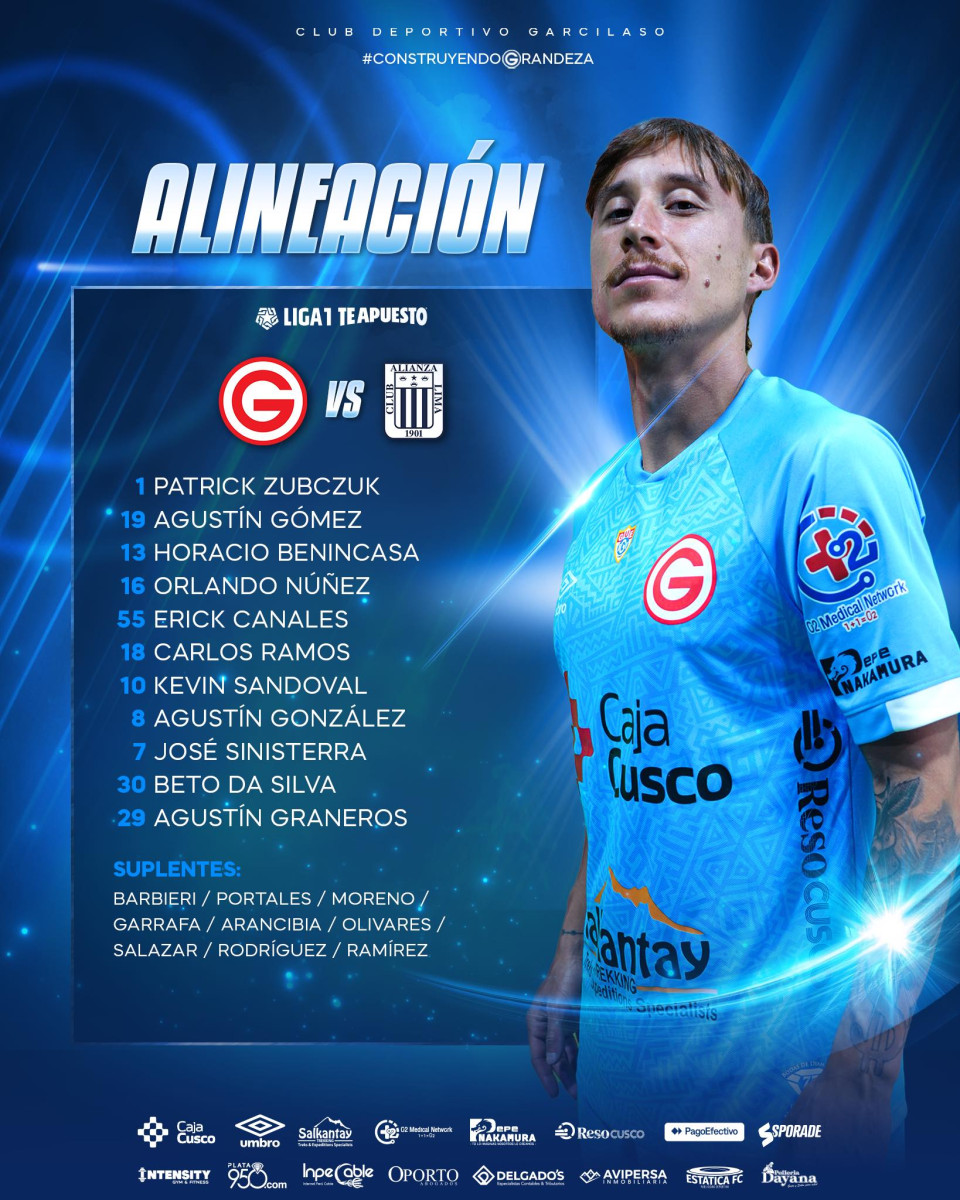 • Deportivo Garcilaso: Patrick Zubczuk; Agustín Gómez, Horacio Benincasa, Orlando Núñez, Erick Canales; Inti Garrafa, Carlos Ramos, Agustín Gonzales; Francisco Arancibia, José Luis Sinisterra y Agustín Graneros.