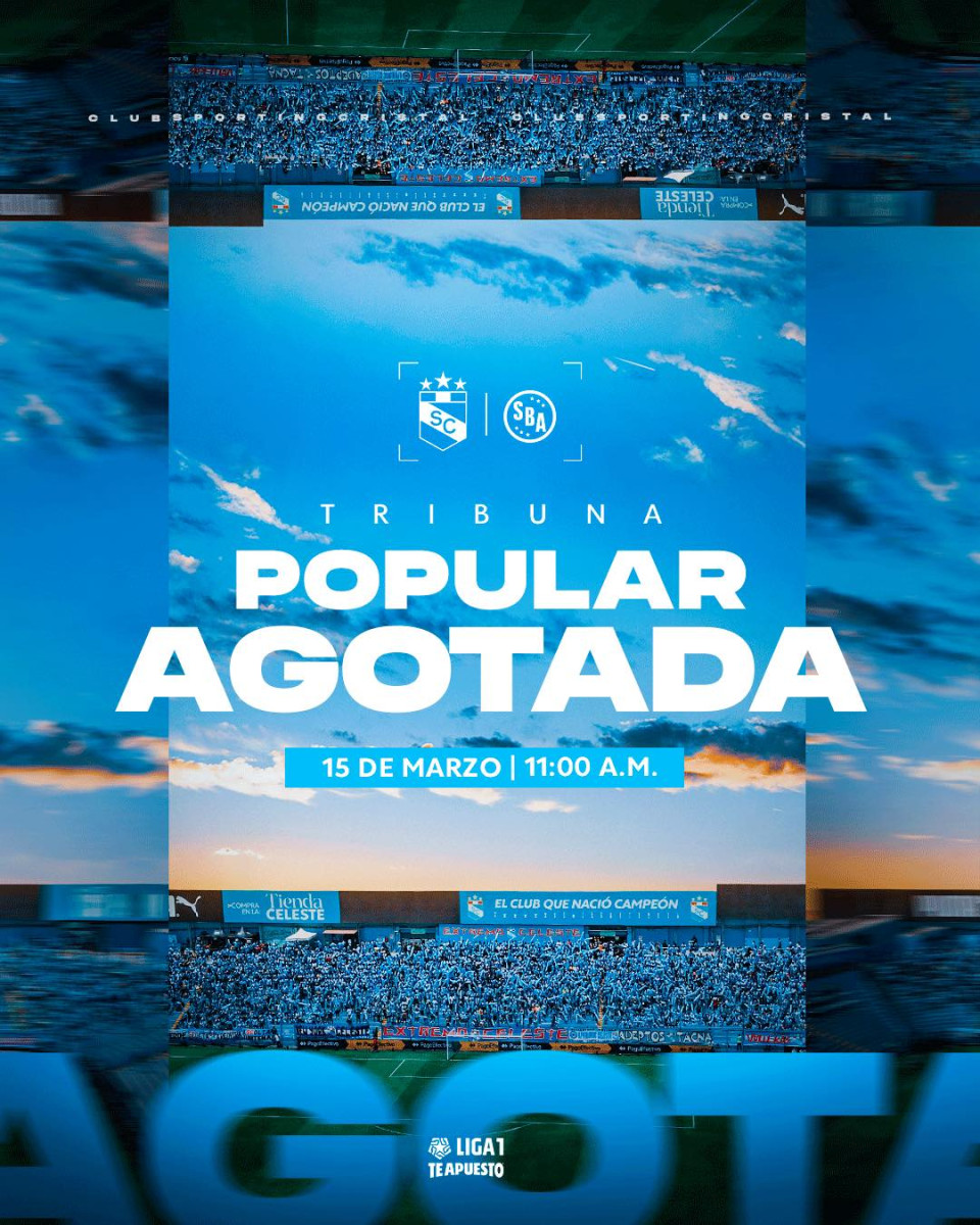 El club rimense informó que ya se vendieron todas las entradas para la tribuna popular. Aún quedan boletos para oriente y occidente en la página web Joinnus. Foto: Sporting Cristal