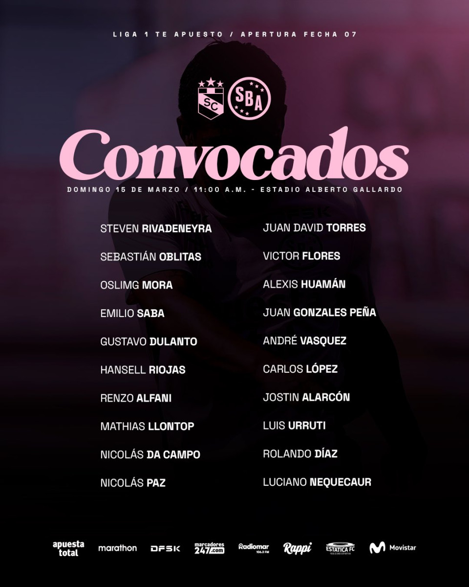 Así quedó la lista de convocados de la Misilera para este compromiso. Hay varias ausencias en la nómina. Foto: Sport Boys