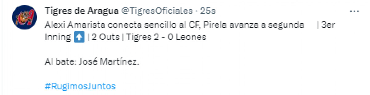 Tigres vuelve a alargar su ventaja y ahora van por delante en el marcador con 3 anotaciones.