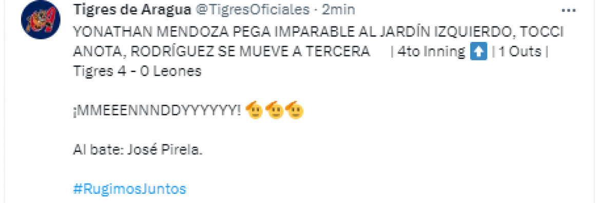 Tigres y Leones no se sacan ventaja sobre el final del juego y persiste el empate con 5 carreras por lado.