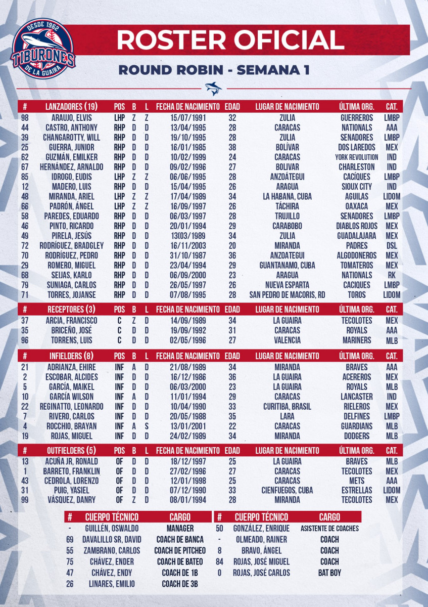 Revisa cómo quedó el roster de Tiburones para afrontar la continuación de la primera semana del Round Robin: