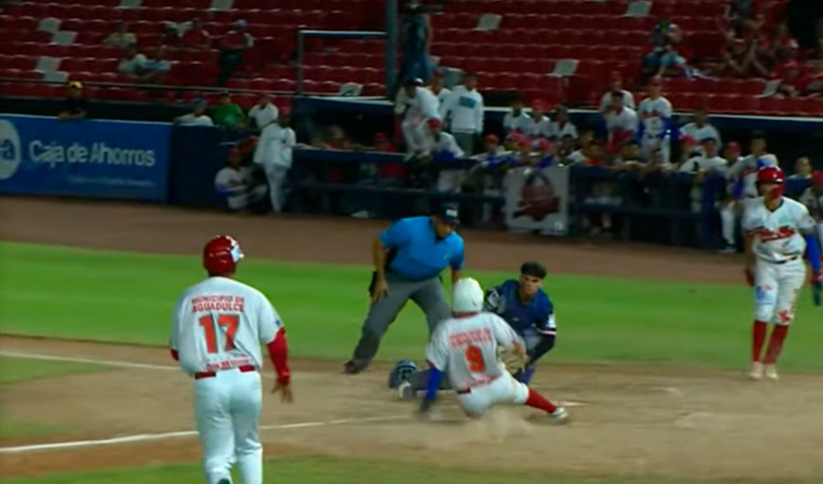 En la baja del 2do inning, con 2 outs, Escudero recibió base por bolas y, luego, avanzó hasta home por un mal disparo del catcher, pero fue puesto out allí. Foto: RPC