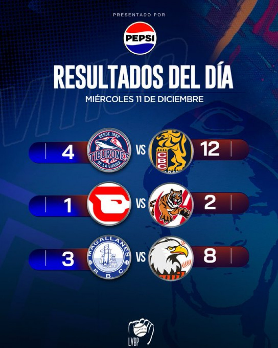 Resultados en la LVBP del último miércoles 11 de diciembre