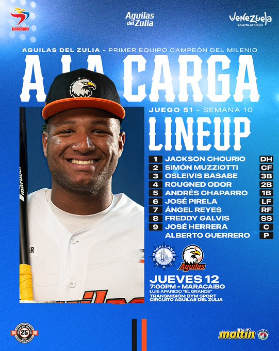 Así formarán las Águilas del Zulia para enfrentar esta noche a Magallanes: