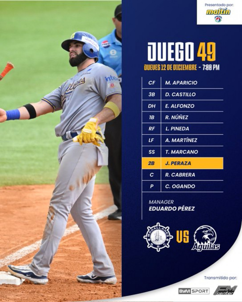 Por su parte, los Magallanes saldrán a jugar con la siguiente novena:
