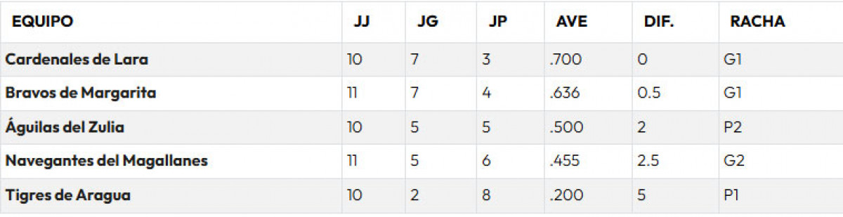 Así marcha la tabla de posiciones del Round Robin LVBP HOY, 11 de enero