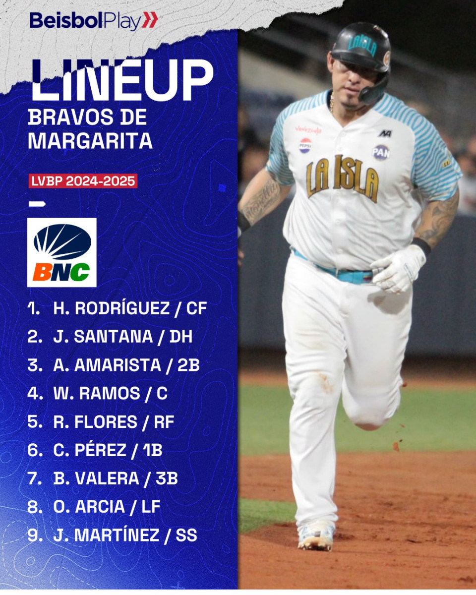 LVBP HOY EN VIVO: lineup de los Bravos de Margarita